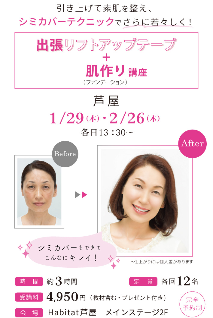 日程変更は、予約キャンセル完了後に再度WEB予約をお願いいたします。当日・前日のキャンセル・日程変更もしくは無断欠席の場合はキャンセル料として受講料100%の代金が発生いたします。
