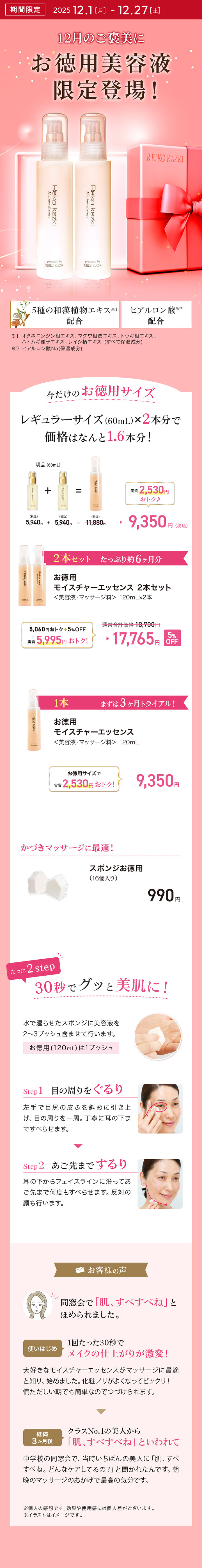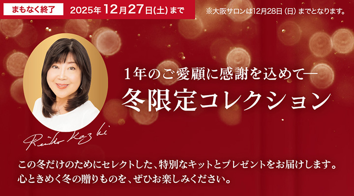 【対象店】REIKO KAZKI 東京サロン・大阪サロン ※REIKO KAZKIショップではキャンペーン内容が異なります。 ※一部商品取り扱い店では実施しておりません。 ※状況により変更となる場合がございます。